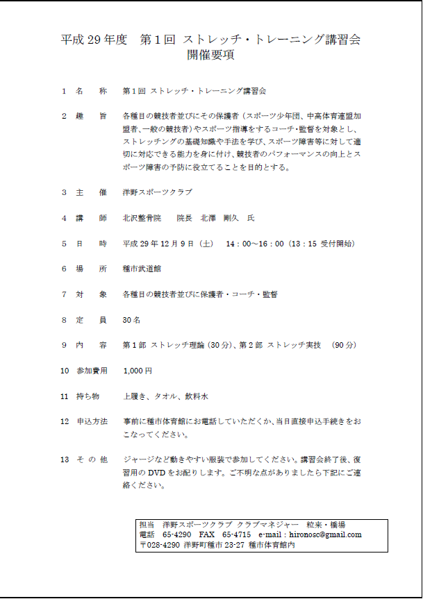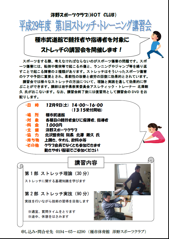 さっそくですが、来月12月9日(土)に開催される ストレッチ・トレーニング講習会 のご案内です。