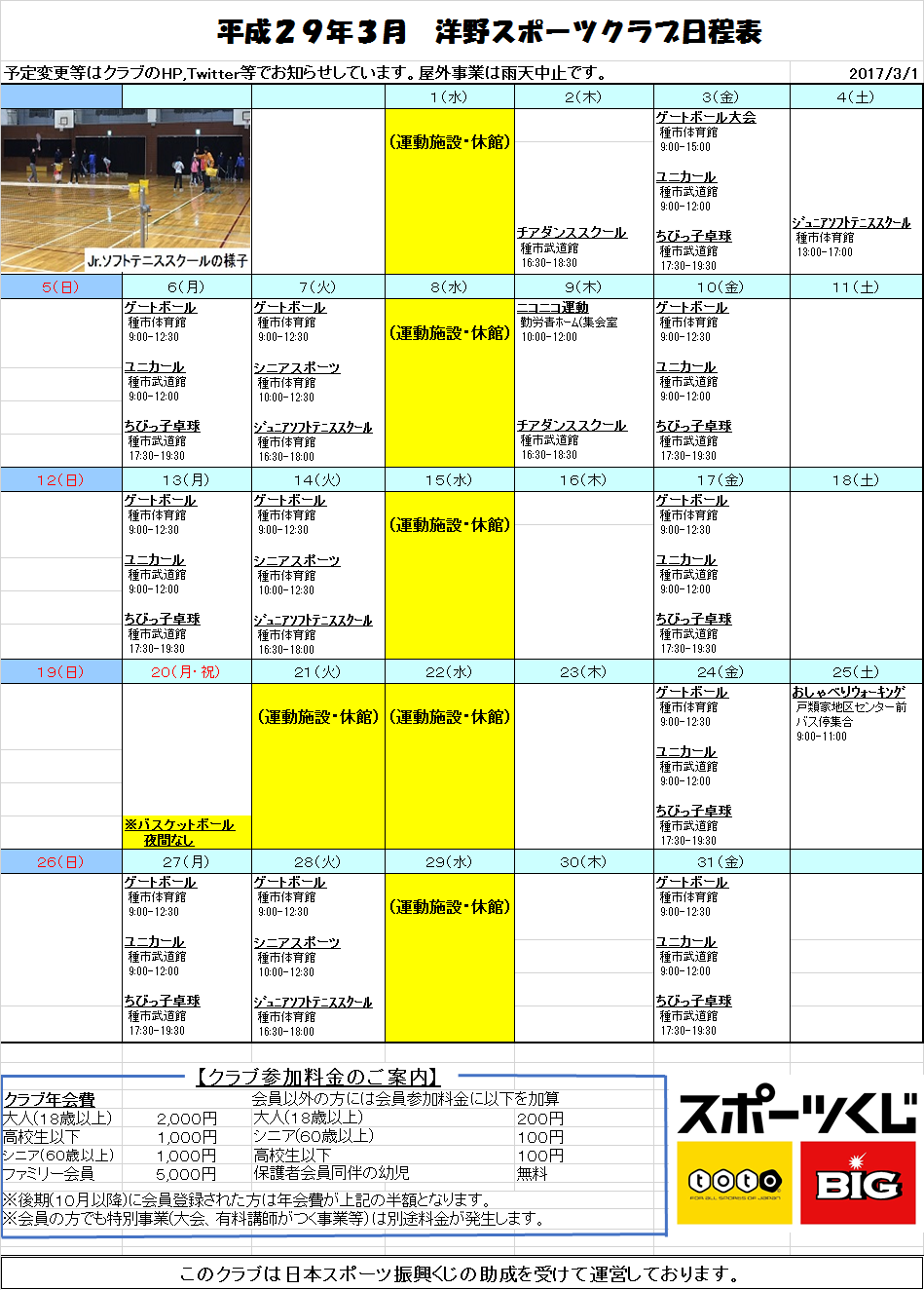 平成29年3月のチラシ&日程表です。