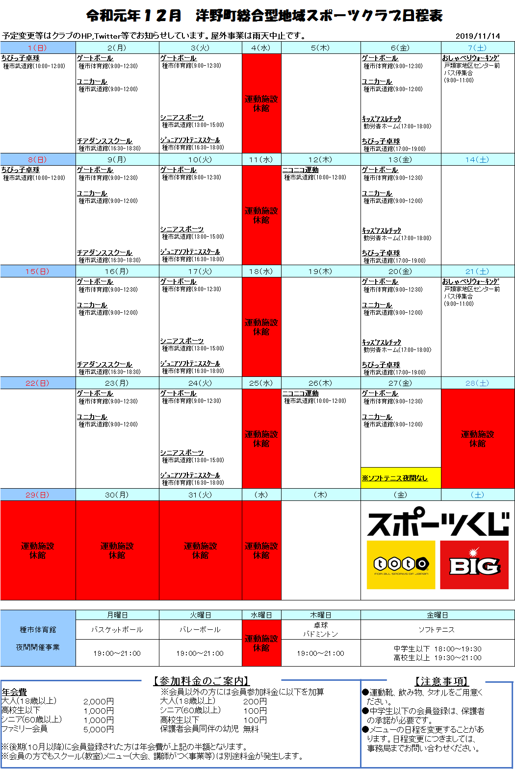 先日公開した1月予定表について、一部変更がありましたのでお知らせします。